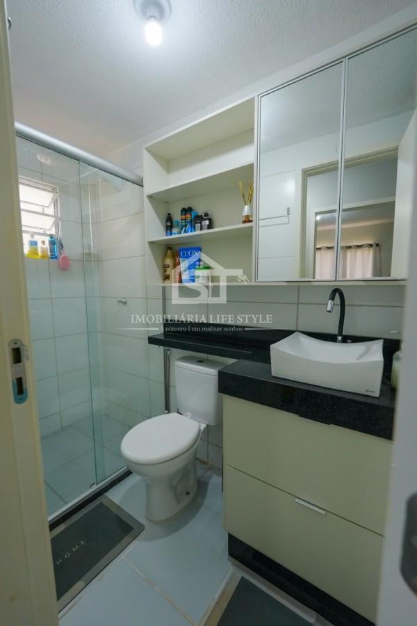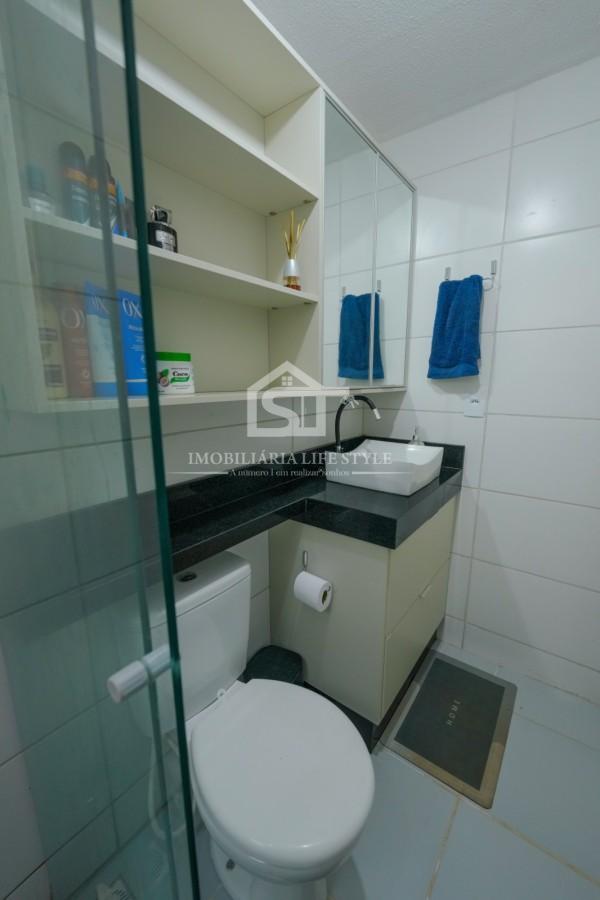 O banheiro é todo planejado, já com box instalado, trazendo mais conforto e praticidade.